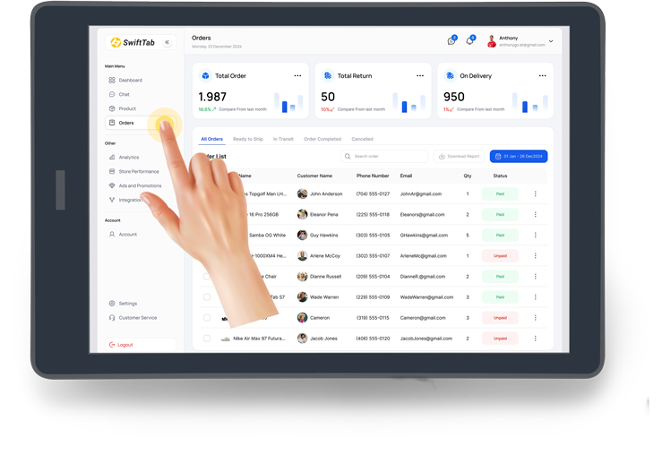 No more stock-outs or over-ordering. SwiftTap tracks your inventory in real time, alerts you on low stock, and keeps your business running smoothly without disruptions.